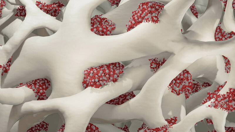 „Wir wollten herausfinden, wo das Problem in der Knochenmarksnische liegen könnte“, sagt Frenz-Wießner, „aber wir hatten dafür einfach kein gutes Modell, um das zu untersuchen.“ So sei die Idee aufgekommen, ein dreidimensionales Organoid der Knochenmarksnische zu entwickeln. Das sind die Orte im Knochenmark, in dem sich die Blutstammzellen befinden – inmitten eines Netzwerks von Blutgefäßen sowie Vorläuferzellen von Knochen, Knorpel und Fett. Störungen der Nische, soviel ist bekannt, können zu Erkrankungen des Knochenmarks wie eben der Myelofibrose oder Leukämie beitragen.