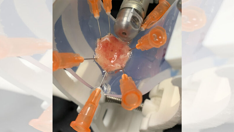 Kapsel beim Scannen einer menschlichen Speiseröhrenresektion © Helmholtz Munich / Christian Zakian