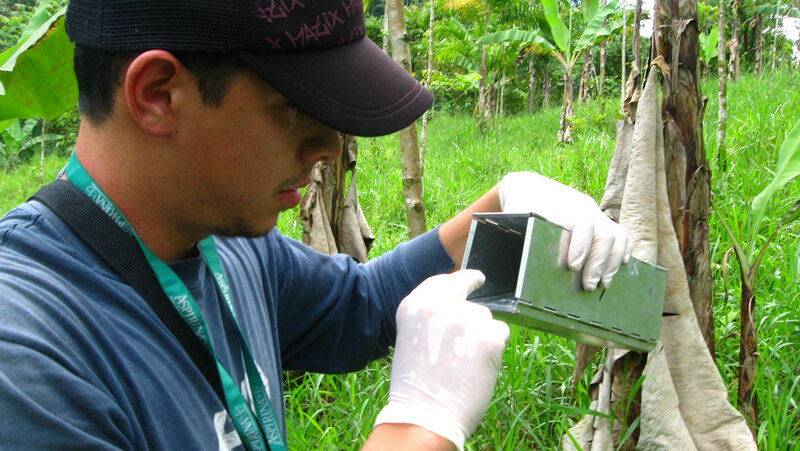 Charité-Forscher sichtet eine Nagetierfalle in Costa Rica © Charité | Andres Moreira-Soto
