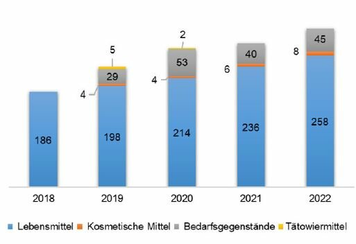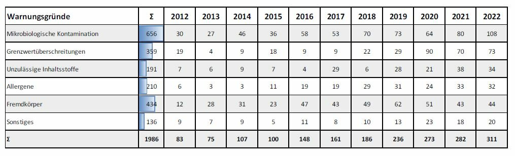 „Die neuerliche Zunahme der Meldungen im Portal Lebensmittelwarnung.de zeigt, dass Unternehmen und Handel ihrer gesetzlichen Meldepflicht nachkommen und somit zum hohen Niveau der Sicherheit von Lebensmitteln in Deutschland beitragen“, zieht Georg Schreiber nach mehr als zehn Portal-Jahren Bilanz. In den vergangenen Jahren ist allerdings ein stetiger Anstieg der Meldungen zu verzeichnen – 2022 (311), 2021 (282), 2020 (273). „Dies bedeutet aber nicht, dass Lebensmittel in Deutschland unsicherer geworden sind“, versucht Schreiber die Situation zu beschreiben. Die Gründe, die zu einer Zunahme der Meldungen und letztendlich zu einer Erhöhung der Lebensmittelsicherheit führen, seien:
