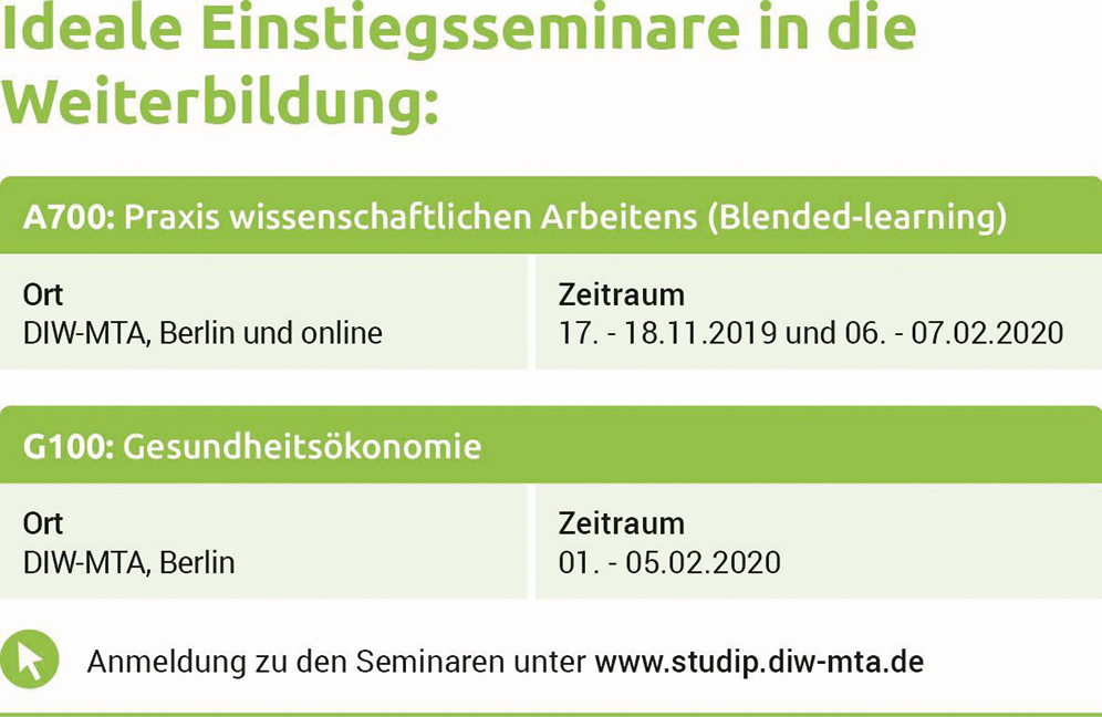 Weitere Informationen zur Weiterbildung erhalten Sie unter info@diw-mta.de.