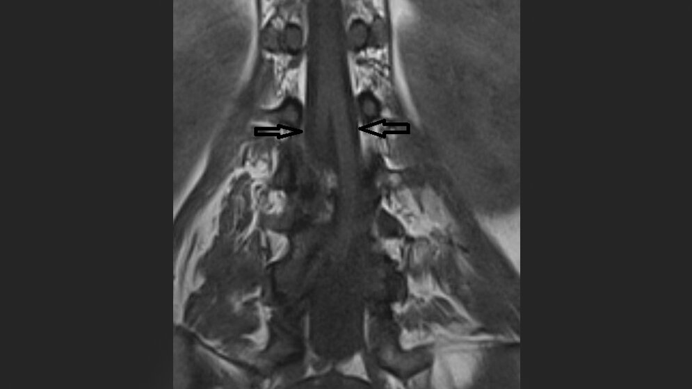 Die Diastematomyelie ist eine komplette oder partielle Teilung des Rückenmarks in 2 Teile, jeweils mit eigenem Zentralkanal und umgebender Pia. Patienten mit 2 Duraschläuchen gehören zum Typ 1 der Diastematomyelie, die mit nur einem angelegten Duralschlauch zum Typ 2. Die Anomalie kann auch erst im fortgeschrittenen Alter entdeckt werden.