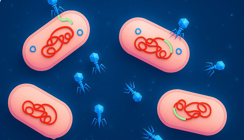 Sogenannte Riesenviren, auch Jumbo-Phagen genannt, können sich zwischen Zellen bewegen. Forschende des Max-Planck-Instituts für Evolutionsbiologie haben herausgefunden, dass Bakterien mithilfe dieser Jumbo-Phagen mobile genetische Elemente transportieren.