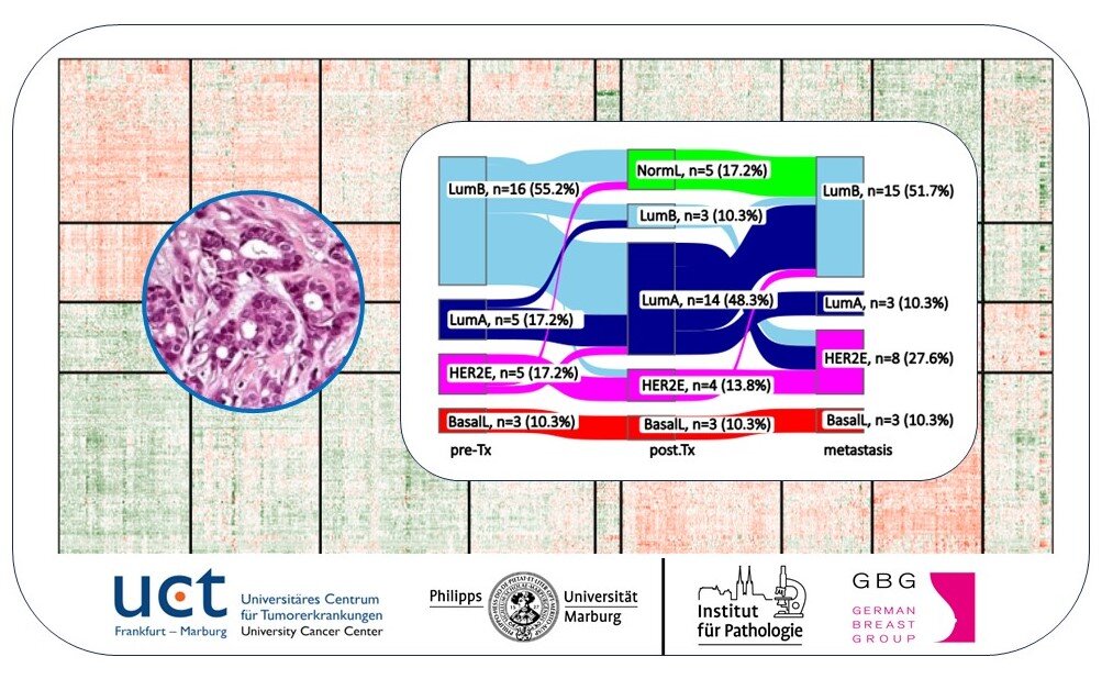Ein hessisches Forscherteam des Universitären Centrum für Tumorerkrankungen Frankfurt-Marburg (UCT-FM) und der GBG Forschungs GmbH unter Leitung von Prof. Dr. Carsten Denkert (Marburg) und Prof. Sibylle Loibl (Frankfurt) hat in einer aktuellen Studie Erkenntnisse zur molekularen Heterogenität bei sogenanntem luminal (HR+/HER2-negativem) Brustkrebs gewonnen. Die Untersuchung zeige, dass sich Tumore unter neoadjuvanter Chemotherapie dynamisch verändern. Bestehende Klassifikationssysteme müssten daher erweitert werden, um die Behandlung gezielter auf die Patientinnen abzustimmen. Die Forscherinnen und Forscher analysierten 1.454 Gewebeproben von mehr als 500 Patientinnen aus der international durchgeführten klinischen Phase-3-Studie Penelope-B. Dabei wurden gezielt Proben, die vor Beginn der Chemotherapie gewonnen wurden, mit Proben nach der Therapie verglichen. Dabei konnten sie feststellen, dass aggressive Tumoren des Typs Luminal B häufig unter der Therapie in eine weniger aggressive Luminal A-Form übergehen. In späteren metastasierten Stadien können einige der Tumore jedoch wieder in den aggressiveren Luminal-B-Phänotyp zurückkehren.