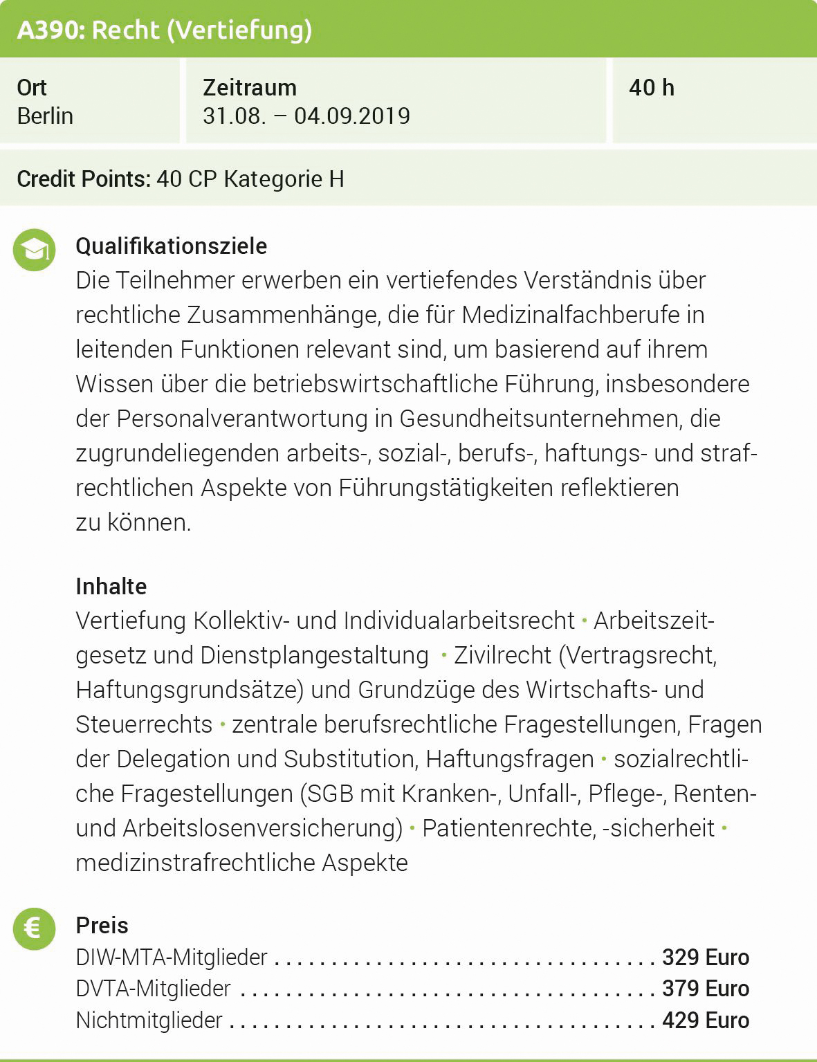 Gönnen Sie sich also einen Blick in das DIW-MTA-Jahresprogramm 2019, in dem manche Angebote auch schon in das Jahr 2020 weisen. Unterstreichen Sie damit Ihre Selbstkompetenz in Sachen lebensbegleitender Weiterbildung, um optimal vorbereitet zu sein, auf das, was an spannenden Herausforderungen noch auf Sie wartet.