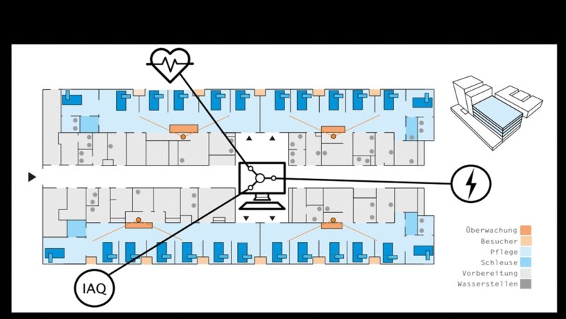 „Ein besonderes Augenmerk werden wir dabei auf energie- und kosteneffiziente Lösungen richten“, so Kriegel. Denn angesichts knapper Kassen müsse das zur Verfügung stehende Geld möglichst sinnvoll eingesetzt werden. Das auf den Stationen installierte Sensornetzwerk könnte genau dabei eine wichtige Rolle spielen: als Signalgeber im Klinikalltag, um auf sich ändernde Umstände wie etwa Hitze- und Kälteperioden oder Krankheitswellen schnell und flexibel durch Änderungen des Betriebsmodus reagieren zu können.