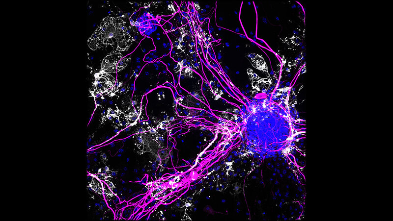 Die Immunzellen des Gehirns sind eigentlich gute Wächter und beseitigen Eindringlinge wie Mikroben, aber auch die typischen Plaques, die bei Alzheimer entstehen. Altert das Gehirn, sind die Mikroglia jedoch in den unterschiedlichsten Zuständen zu finden: manche funktionieren weiter gut, andere verlieren jedoch nach und nach ihre Funktion und produzieren dauerhaft in geringen Mengen Entzündungsbotenstoffe. Forschende der Charité konnten jetzt beobachten, wie ein solcher Entzündungsbotenstoff das Voranschreiten der Alzheimererkrankung begünstigt.
