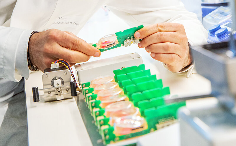 Dabei konnten die Forschenden einen Rückgang der Fibrose beobachten. Das Herzmuskelgewebe wurde wieder elastischer und die Lebensfähigkeit erhöhte sich. „Nach unserer Kenntnis ist dies die erste Studie, in der die Auswirkungen von miR-21 direkt am lebenden menschlichen Herzgewebe untersucht wurde“, hält Professor Thum fest. „Die Tests in den Kultivierungskammern haben gezeigt, dass der miR-21-Blocker ein möglicher Medikamentenkandidat ist, um Fibroseentwicklung bei Herzinsuffizienz zu stoppen und sogar rückgängig zu machen.“ Untersuchungen an LMS haben sich zudem als Nachweis der präklinischen Wirksamkeit bewährt und können künftig zur Einsparung der Tierversuche beitragen.