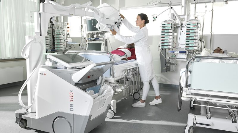 Eingesetzt werden kann der One-Click-Workflow auf allen Agfa DR-Systemen – egal, ob DR Röntgenraum oder mobiles DR-System. Der Prozess beginnt mit dem berührungslosen Anwender-Log-in mittels RFID-Karte. Anschließend wird der Patient durch das Einlesen eines Barcodes identifiziert, entweder vom Patientenarmband oder vom Barcode am Fußende des Patientenbettes. So werden Patientenverwechslungen ausgeschlossen. Nach dem Erfassen des Patientenbarcodes wechselt die Benutzeroberfläche des DR-Systems automatisch von der Arbeitslistenansicht in den Untersuchungsmodus. Dort werden die anzufertigenden Untersuchungen und Projektionen sowie die Expositionsbereitschaft angezeigt. Nach erfolgter Positionierung des Patienten kann die Aufnahme unmittelbar ausgelöst werden. Sollten mehrere Untersuchungen und/oder Projektionen angefordert sein, aktiviert die Acquisition Workstation automatisch die nächste Untersuchung/Projektion für diesen Patienten. Nach Abschluss aller angeforderten Aufnahmen erfolgt der erste und einzige Klick auf die Taste „Schließen & Senden“, um die Untersuchungen für den Patienten abzuschließen und die Aufnahmen automatisch ins Bildarchiv zu übertragen.