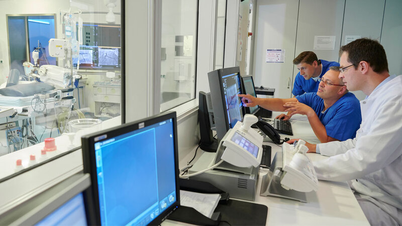 Die dreizipfelige Trikuspidalklappe ist das Einlassventil zur rechten Herzkammer, von der das sauerstoffarme Blut in die Lunge gepumpt wird. Sie verhindert, dass Blut während des Pumpvorgangs zurück in die rechte Vorkammer fließt. Ist die Klappe undicht (insuffizient), leiden Betroffene unter Atemnot, Rhythmusstörungen, Entkräftung, Trinkschwäche und Flüssigkeitsansammlungen in der Bauchhöhle oder in den Beinen. Typisch ist auch eine bläuliche Verfärbung der Haut. „Eine Trikuspidalklappenerkrankung ist selten angeboren. Sie kann durch Verschleiß, Infektionen oder meist ohne Veränderungen der Klappe selbst in Folge anderer Erkrankungen des Herzens oder der Lunge entstehen“, sagt Professor Rudolph. „Das ist in aller Regel durch ein charakteristisches Herzgeräusch durch ein Stethoskop zu hören.“ Mittels einer Herzultraschalluntersuchung (Echokardiografie) und EKG wird der Schweregrad der Erkrankung festgestellt.