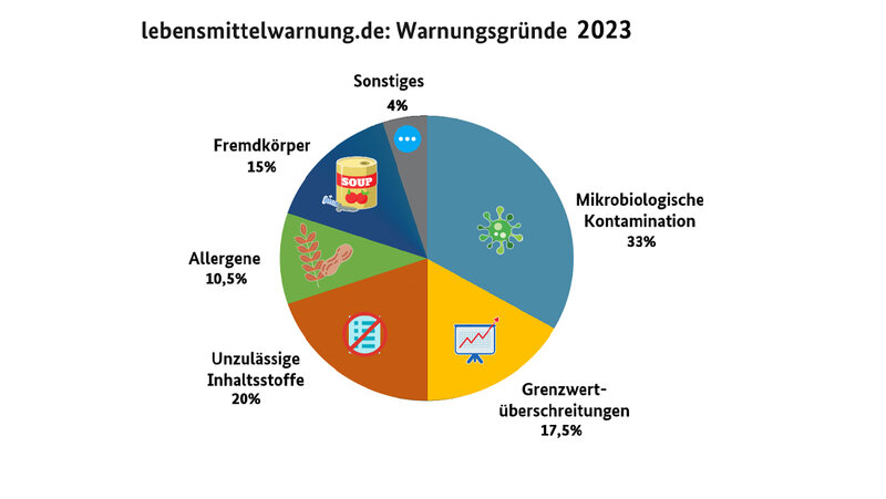 Weitere Warngründe sind unter anderem Grenzwertüberschreitungen, unzulässige Inhaltsstoffe, Allergene und Fremdkörper. „Dafür, dass Lebensmittel gesundheitlich unbedenklich sind, ist in erster Linie derjenige zuständig, der Lebensmittel herstellt oder vertreibt“, erklärt Cramer. „Lebensmittel, die den rechtlichen Anforderungen nicht entsprechen und als nicht sicher eingestuft werden, müssen vom Markt genommen werden.“