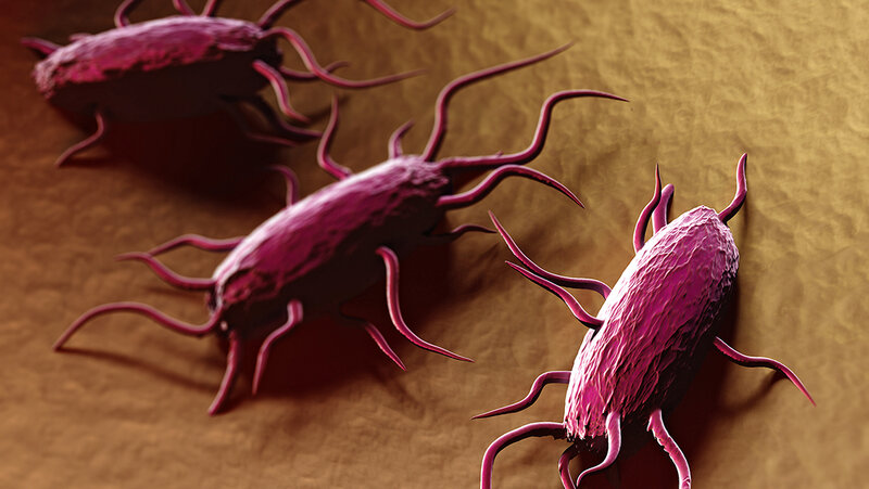 The aerobic, gram-positive rod bacteria of the species Listeria monocytogenes are quite stable in the environment. Many foods, such as lettuce, dairy products, meat and fish, can be contaminated. So, exposure is quite common. Listeriosis, however, is rare because listeria hardly survives among normal intestinal flora, and even if the listeria crosses the intestinal barrier, the defense system is usually ready to prevent dissemination. Still, in old age and when the immune system is weak, especially with a T cell deficiency, these opportunistic bacteria can reach various organs via bacteremia and cause meningitis and encephalitis in particular. During pregnancy, they can cross the placental barrier and induce an intrauterine infection of the fetus. Diagnosis is made by microscopic and cultural evidence, less frequently by PCR. The drug of choice for antibiotic chemotherapy is ampicillin or amoxicillin. Listeria, on the other hand, is generally resistant to cephalosporins.