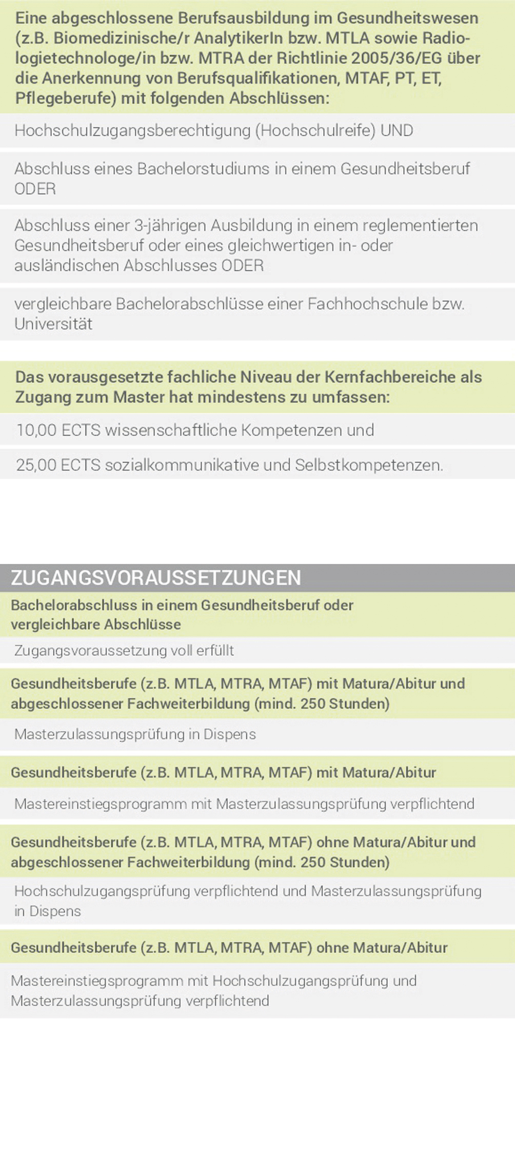 Um mit dem Masterlehrgang „Pädagogik in Gesundheitsberufen“ beginnen zu können, sind folgende Voraussetzungen zu erfüllen: