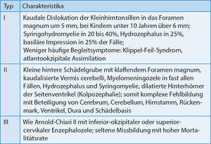 Tabelle 2: Typen der Arnold-Chiari-Malformation (nach 1, 3, 4, 7)