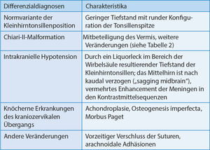 Tabelle 3: Diff erenzialdiagnosen der Arnold-Chiari-I-Malformation (nach 3)