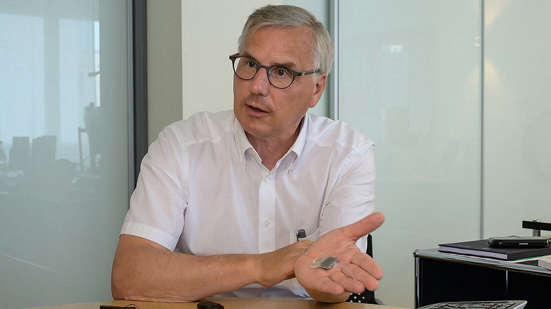„Bei der Cochlea-Implantation wird hinter dem Ohr ein kleiner Hautschnitt gesetzt, über den ein Zugang zur Cochlea geschaffen wird. Die feinen Elektroden werden vorsichtig in die Hörschnecke eingeführt, das Implantat wird unter der Haut fixiert“, erklärt Prof. Ulrich Hoppe, Leiter der Audiologie und des Cochlear-Implant-Centrums CICERO. Der Sprachprozessor, der die Umgebungsgeräusche aufnimmt und in elektrische Impulse umwandelt, wird außen an der Kopfhaut befestigt. Dieser wird jedoch erst nach einer dreiwöchigen Heilungsphase angebracht.